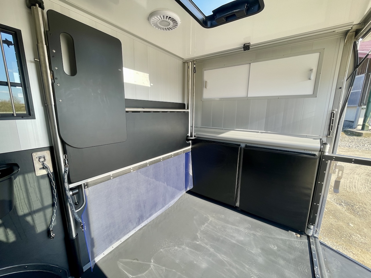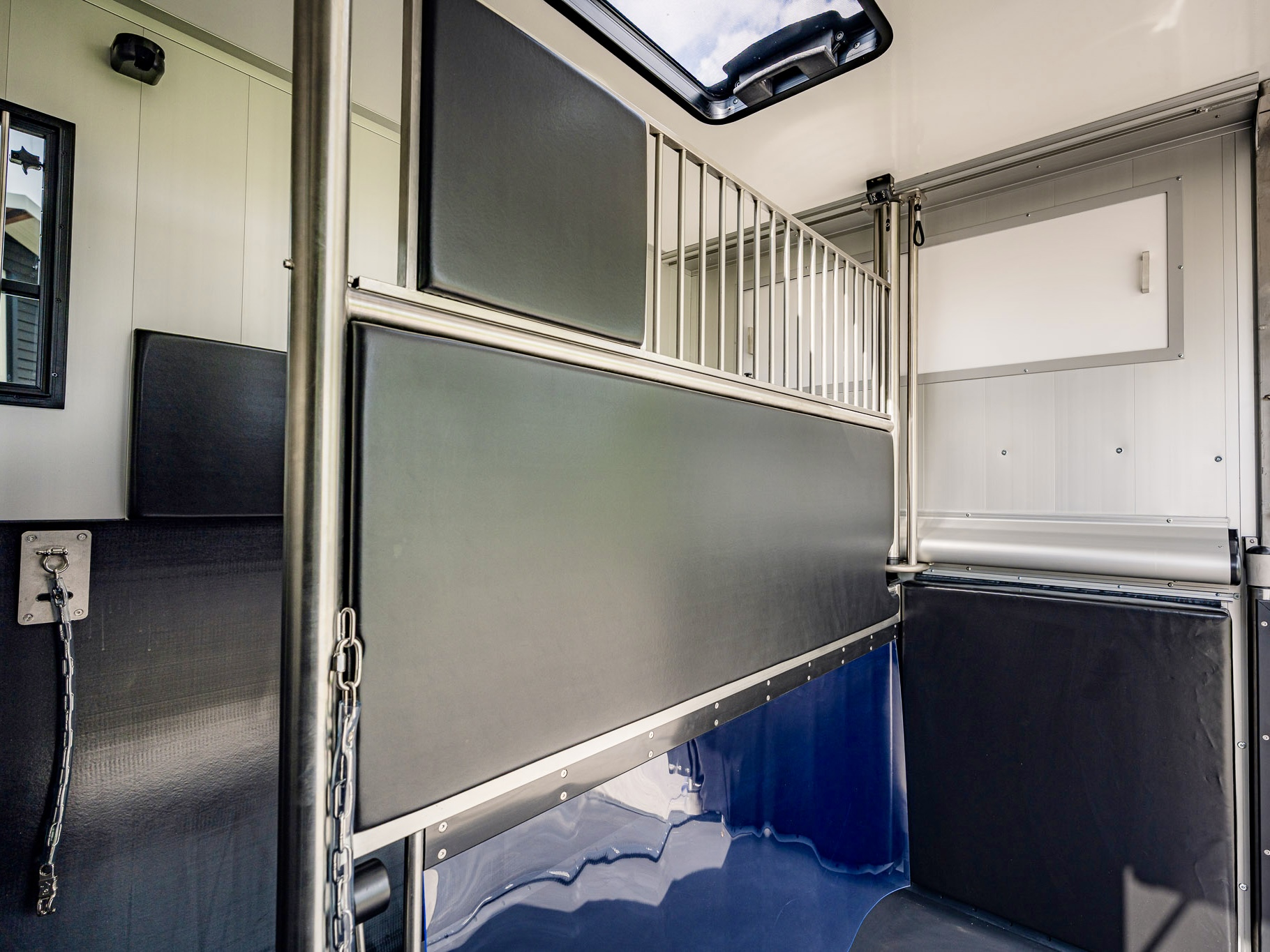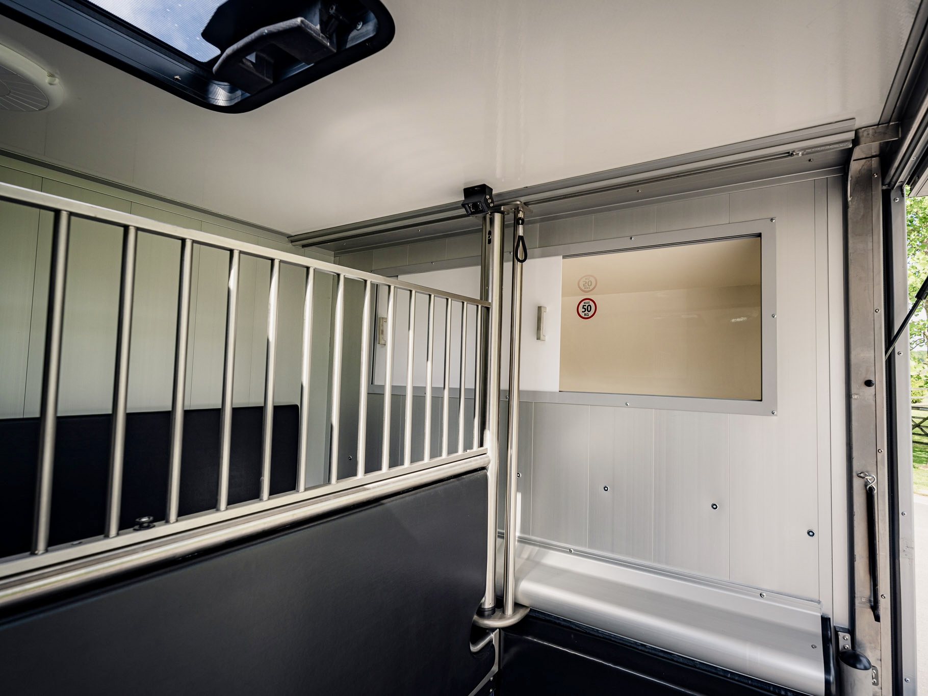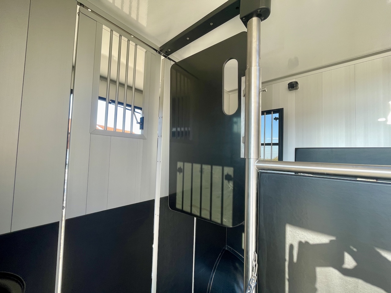 Um möglichst stressfrei durch den Stall- und Turnieralltag zu kommen, bietet dieses Modell auch bei der Gestaltung des Pferdeabteils Entwicklungen, wie zum Beispiel die Ein-Hand-Bedienung der Trennwand und ein verbessertes Schienensystem zum Verschieben der Trennwand, um eine hohe Benutzerfreundlichkeit und Komfort zu garantieren.