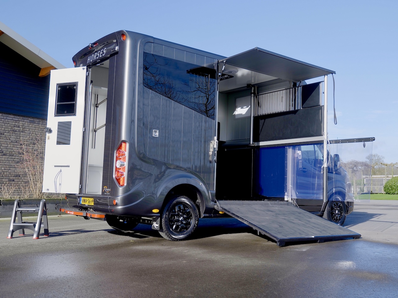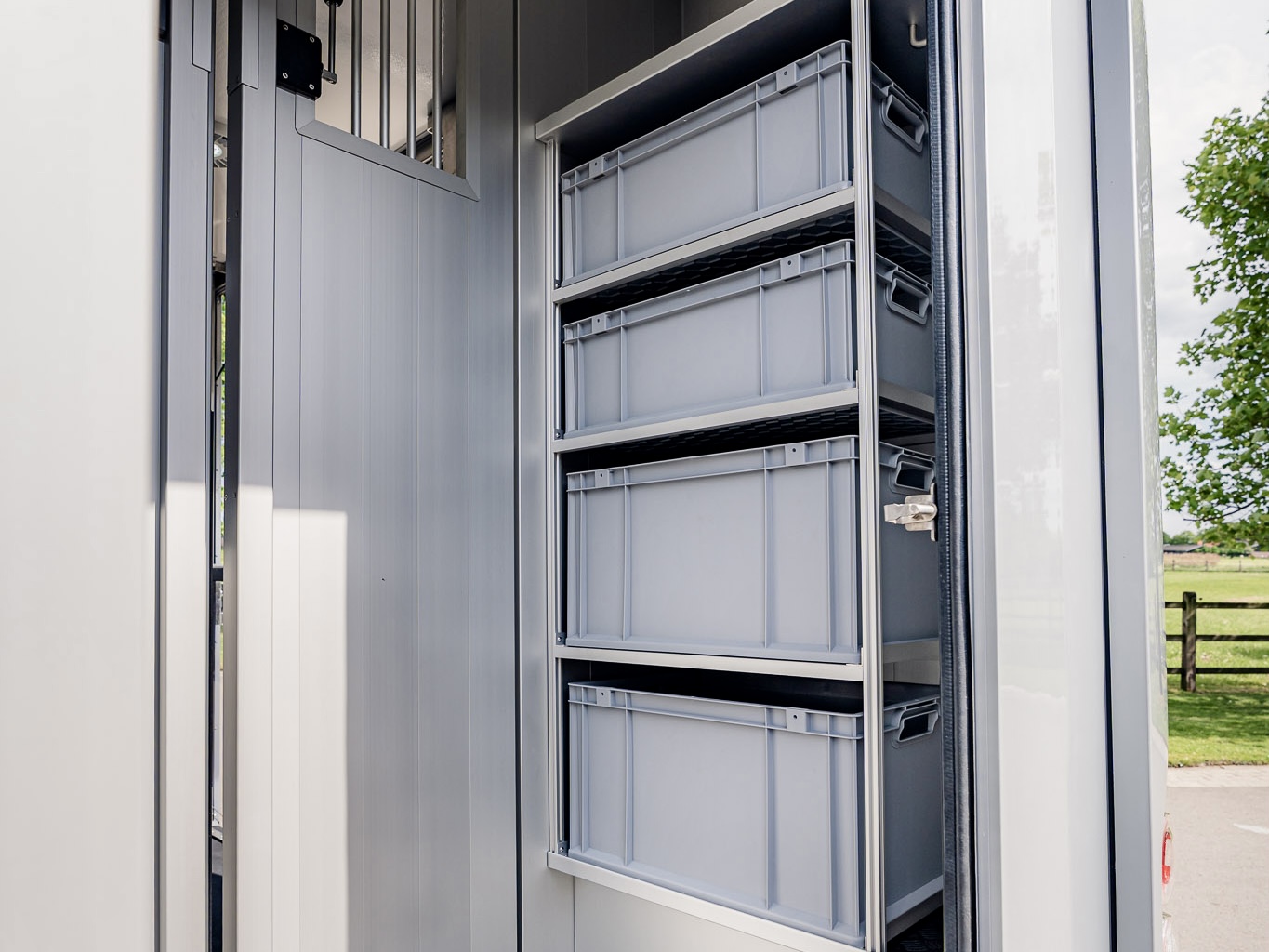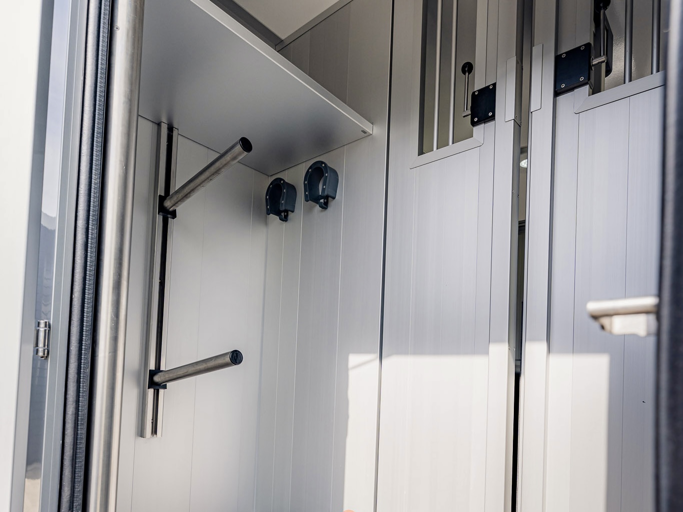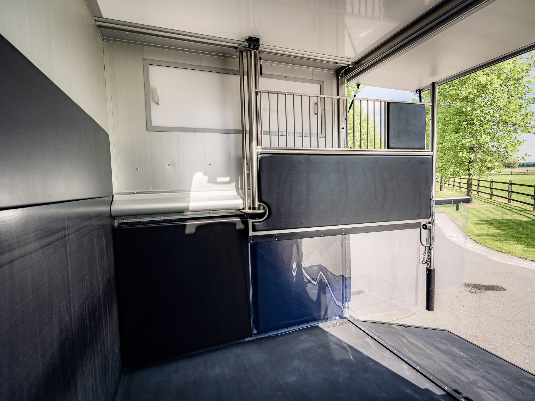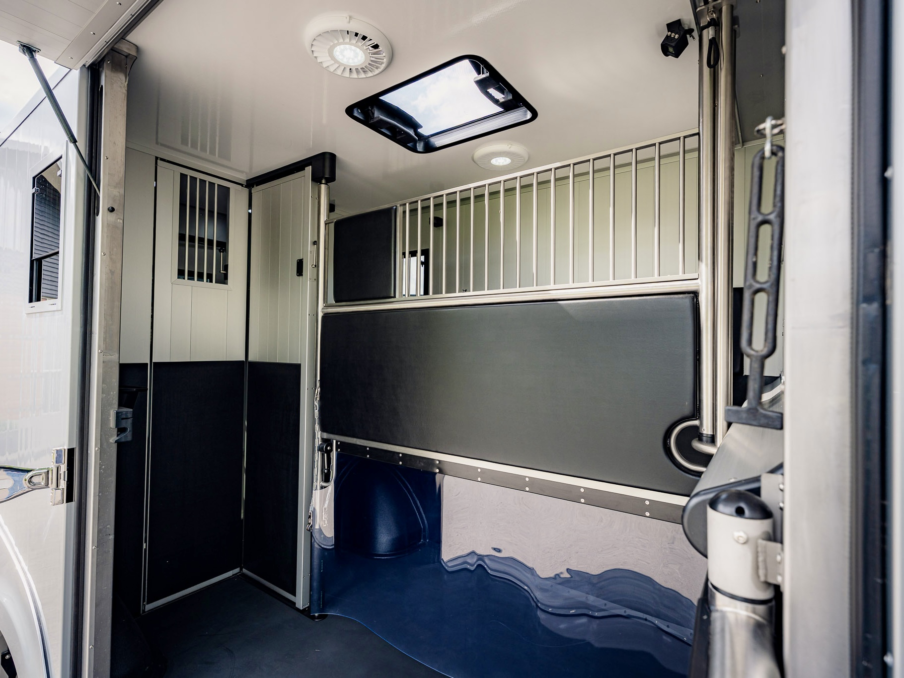 Um möglichst stressfrei durch den Stall- und Turnieralltag zu kommen, bietet dieses Modell auch bei der Gestaltung des Pferdeabteils Entwicklungen, wie zum Beispiel die Ein-Hand-Bedienung der Trennwand und ein verbessertes Schienensystem zum Verschieben der Trennwand, um eine hohe Benutzerfreundlichkeit und Komfort zu garantieren.