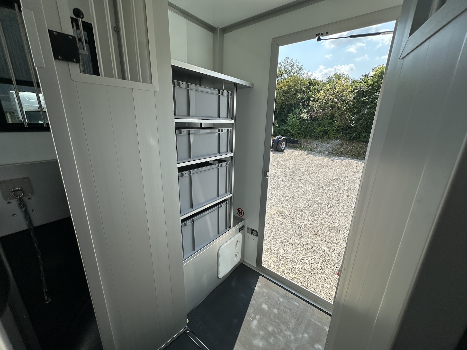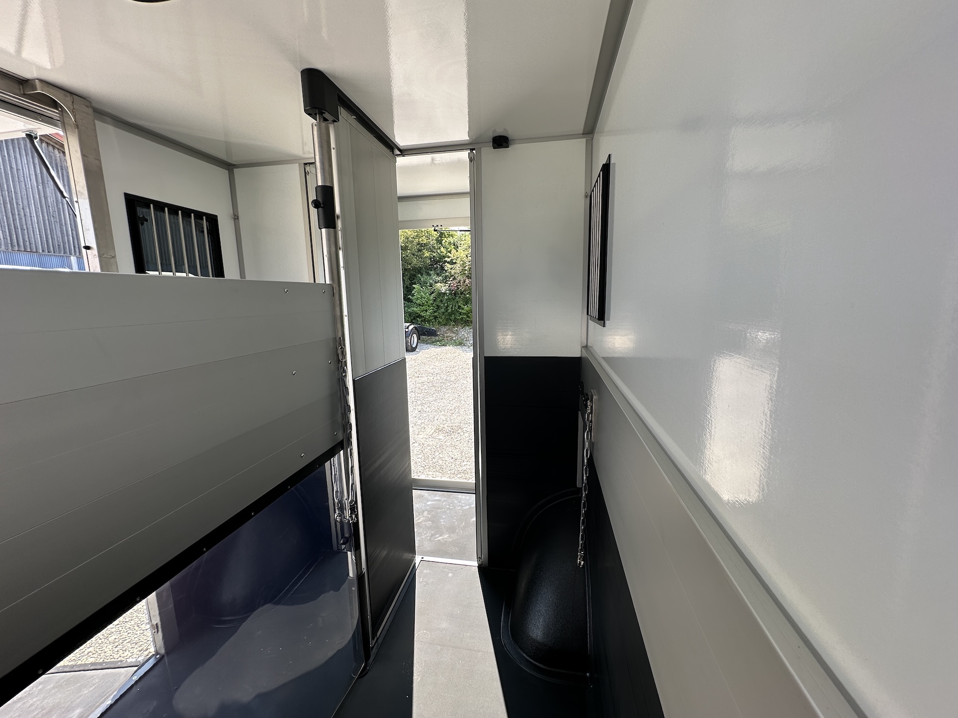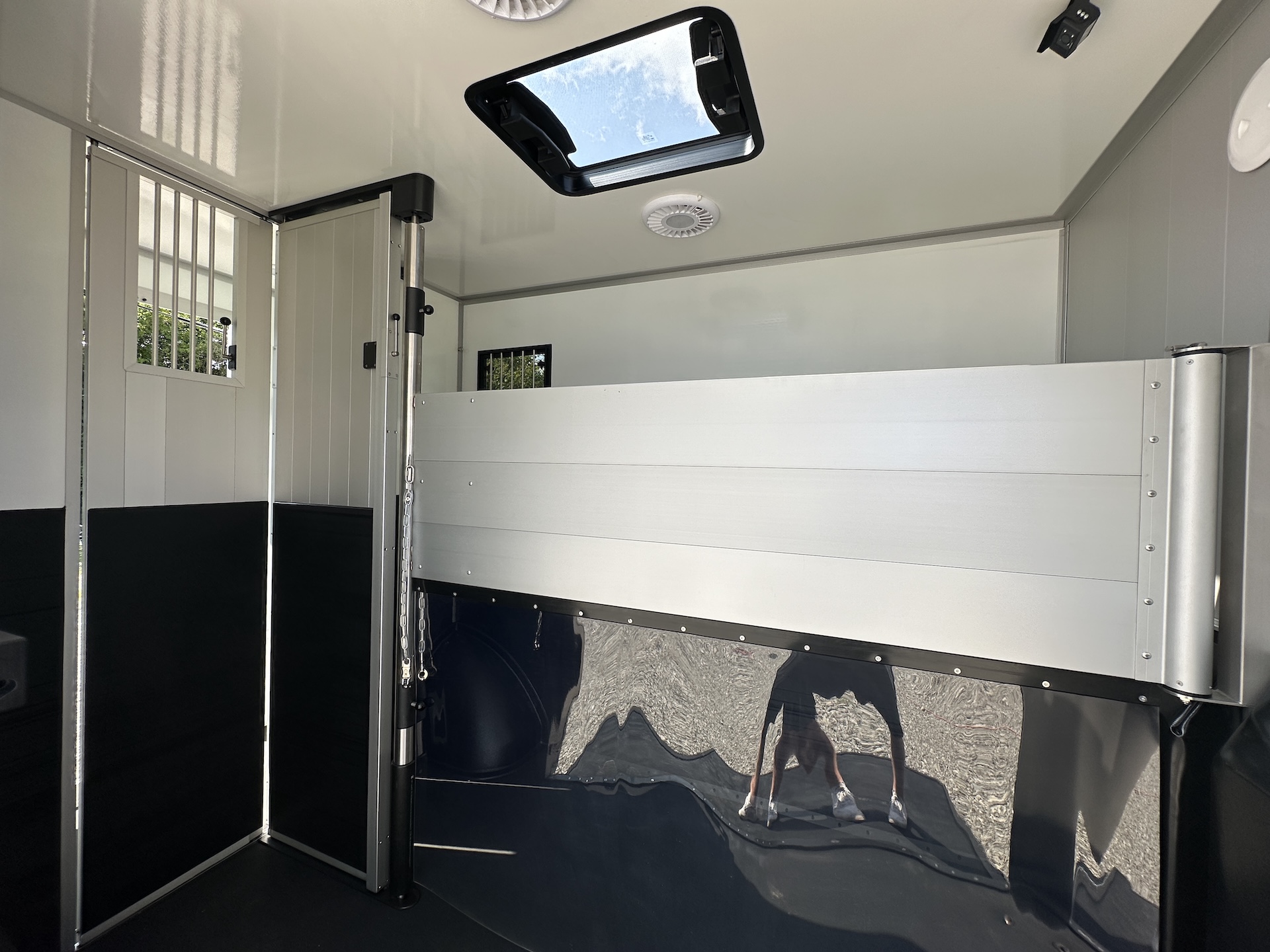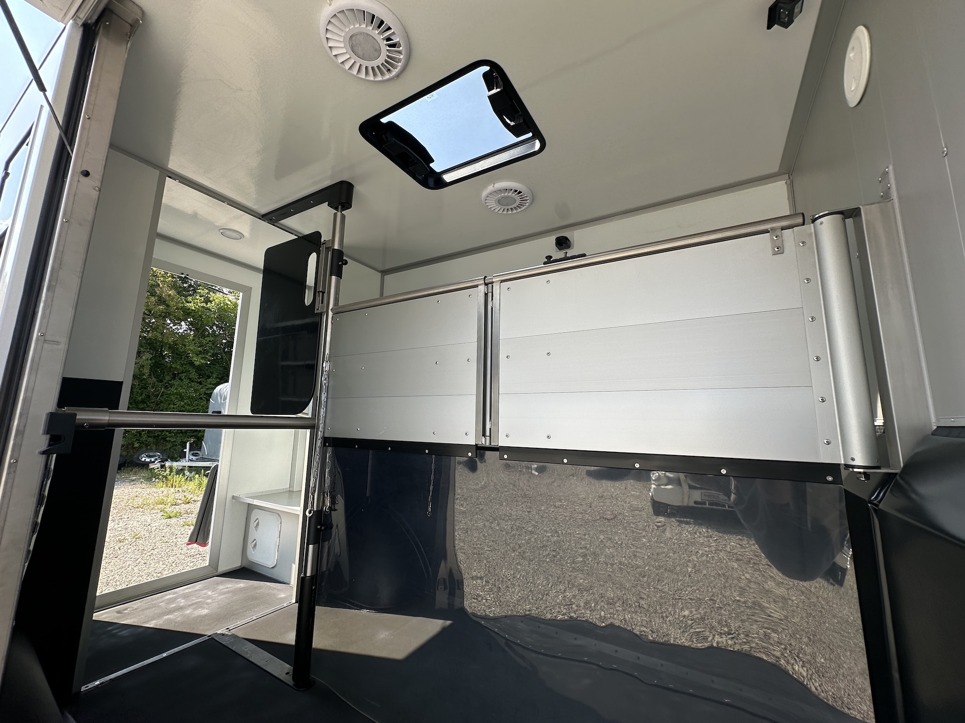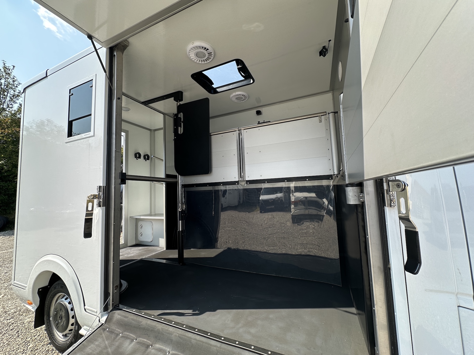 Der Yorse vereint minimalistisches Design mit einer klaren, eleganten Linie – ein Pferdetransporter, der nicht nur praktisch, sondern auch optisch überzeugt. Schon auf den ersten Blick wird die hochwertige Verarbeitung sichtbar: sportlich, modern und zugleich zeitlos. Die Verwendung robuster Materialien garantiert Langlebigkeit und Wertstabilität, sodass der Yorse Ihnen viele Jahre ein verlässlicher Begleiter bleibt.